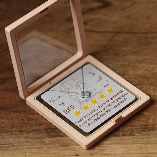 Cadou pentru Soră ❤ Lanțișor din argint Strop, cu mesaj "5 stele", ramă 3 culori