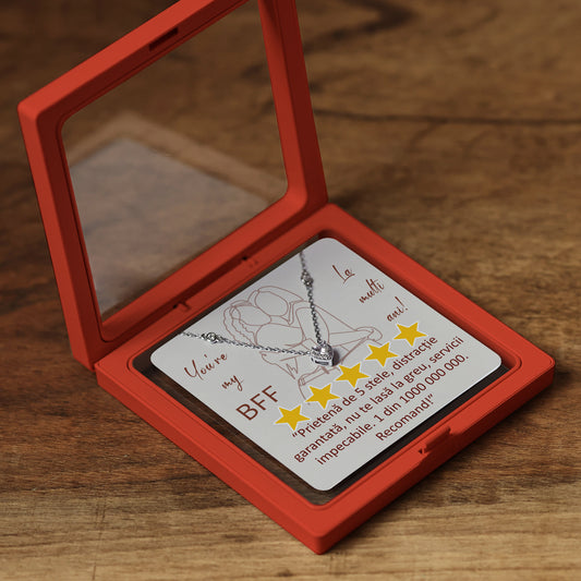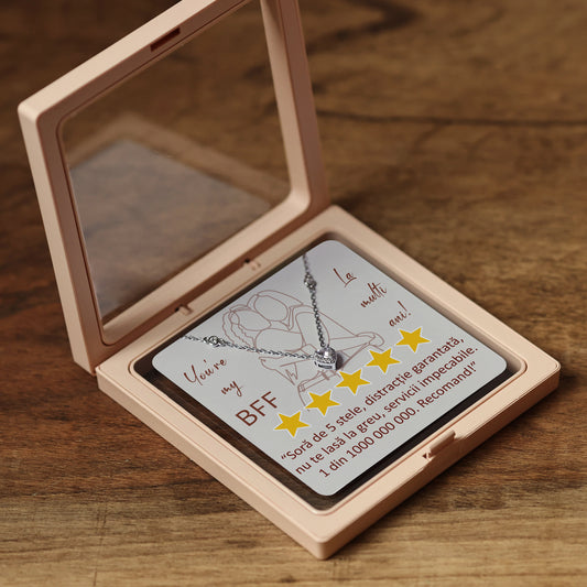 Cadou pentru Iubită ❤ Lănțișor din argint Inimă, cu mesaj "5 stele", ramă 3 culori