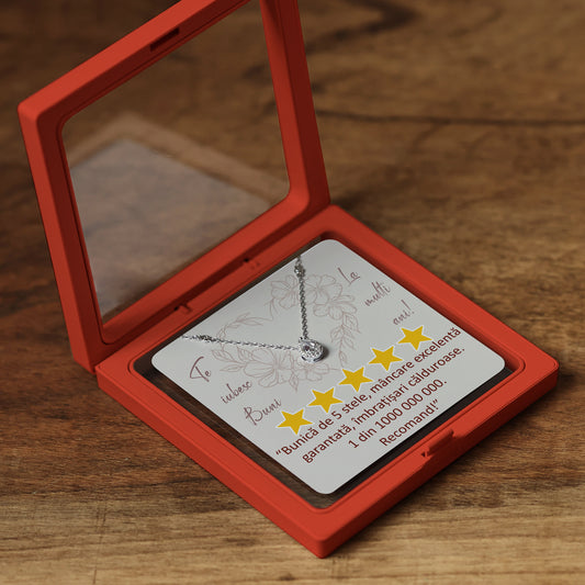 Cadou pentru Bunică ❤ Lănțișor din argint Strop, cu mesaj "5 stele", ramă 3 culori