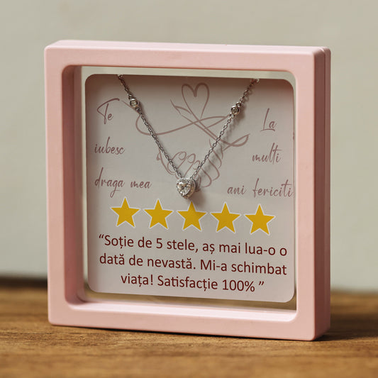 Cadou pentru Soție ❤ Lanțișor din argint Inimă, cu mesaj "5 stele", ramă 3 culori