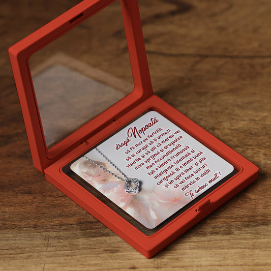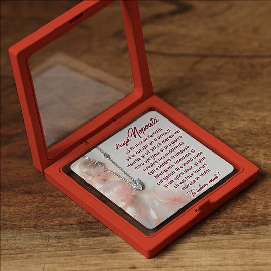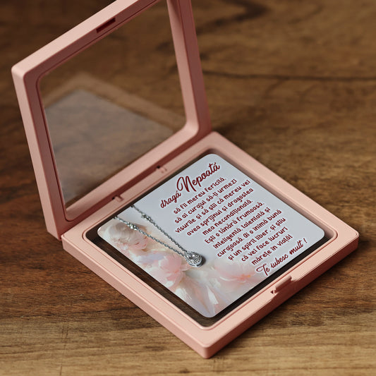 Cadou pentru Nepoată ❤ Lanțișor din argint Inimă, cu mesaj singular, ramă 3 culori