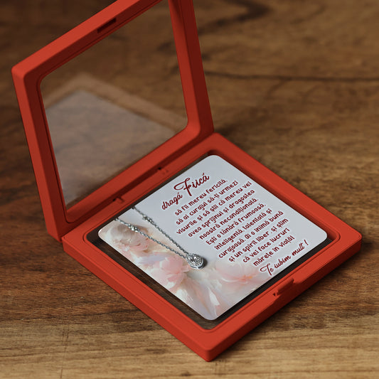 Cadou pentru Fiică ❤ Lanțișor din argint Inimă, cu mesaj plural, ramă 3 culori