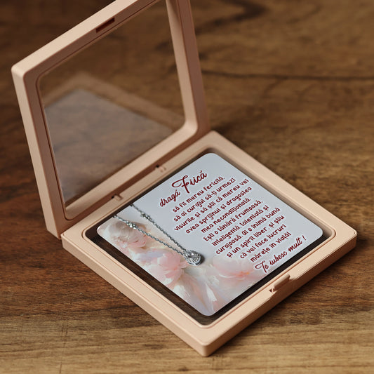 Cadou pentru Fiică ❤ Lanțișor din argint Inimă, cu mesaj singular, ramă 3 culori