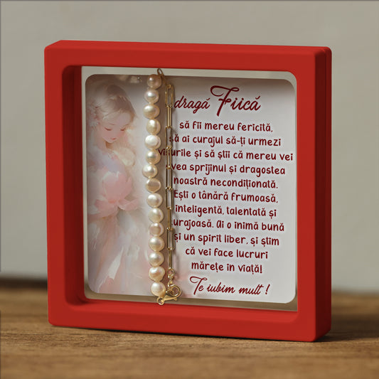 Cadou pentru Fiică ❤ Brățară din argint placat și perle, cu mesaj plural, ramă 3 culori